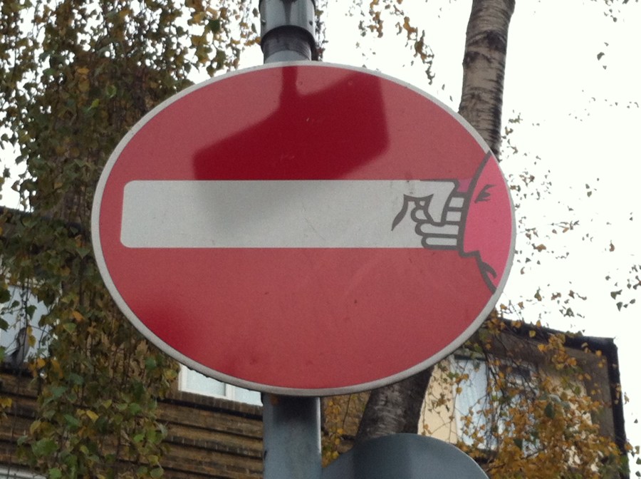 Traffic sign graffiti, London SE1. Photo: Christina Kenny